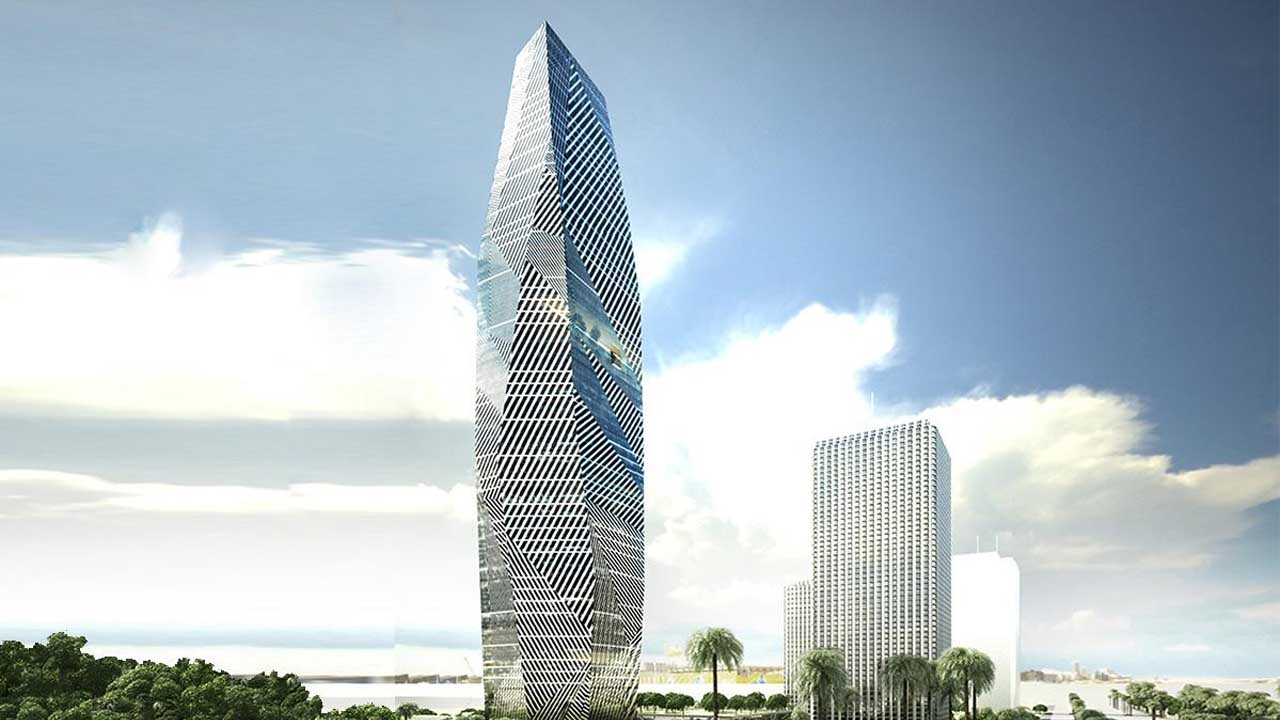 Senna Tower promises a height of 544 meters along Balneário Camboriú’s beachfront. Dedicated to Ayrton Senna, one of Brazil’s most revered athletes, the tower integrates motorsport symbolism throughout the design. A ground-level racetrack traces Senna’s historic Grand Prix victories in detailed pavement inlays.